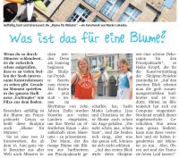 Dafür werden Künstler aus vielen Ländern eingeladen, um ihre Werke im öffentlichen Raum - also außerhalb eines Museums - zu präsentieren. Der Mann, der die riesige Blume mit Blüten aus Surfbrettern am Prinzipalmarkt geschaffen hat, heißt Marko Lehanka. Lina und Christiana ist diese Blume auch schon ins Auge gefallen. "Die sieht schön aus, schön bunt", sind die beiden sich einig, aber was das genau soll, können sie sich nicht erklären. "Auf den ersten Blick wirkt diese Skulptur wie eine schöne Dekoration für den Prinzipalmarkt", so Heike Kropff, die für die Kunstvermittlung der Skulptur-Projekte zuständig ist. "Auf den zweiten Blick erkennt man die grob zusammengewürfelten Surfbretter und ist verdutzt. Mitten im Blütenkelch hat sich ein Computer eingenistet. Stockend erzählt dieser ungeheuerliche Geschichten. Nur wenn man genau hinhört, kann man diese verstehen und sie haben irgendetwas mit Münster zu tun... Also, Ohren auf und der Fantasie freien Lauf lassen!" |
