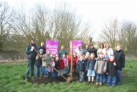 Bürgern um fünf neue Bäume bereichert worden. Bei der Pflanzaktion waren auch die