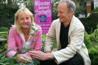 Im privaten Garten von Johannes Holtmann gibt die Zukunftswerkstatt Kreuzviertel den Startschuss für ihren Garten- und Hinterhofwettbewerb. Gesucht werden versteckte Idyllen, Blumengärten wie begrünte Höfe, ruhige Rückzugsmöglichkeiten, die abgeschirmt von der Straße ihren Bewohnern Erholung bieten, ebenso wie Gärten, die Treffpunkt für den nachbarschaftlichen Plausch im Wohnquartier sind. Hauptgewinn ist eine Gartenreise im Münsterland.