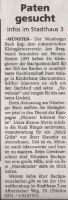 Infos im Stadthaus 3 -MÜNSTER- Der Nienberger Bach liegt dem münsterischen Kleingärtnerverein Am Bergbusch besonders am Herzen. Bereits 1993 haben die Kleingärtner die Bachpatenschaft für den Teil des Baches in unmittelbarer Nachbarschaft ihrer Anlage in Kinderhaus übernommen. Seither kümmern sie sich um den Bachlauf und seine "Bewohner" und sorgen für ein sauberes Umfeld. Ihren Aktionstag am Nienberger Bach stellten die Kleingärtner jetzt in den Dienst der Kampagne "Münster bekennt Farbe". Unter diesem Motto möchte die Stadt Bürger motivieren, Verantwortung für ein "Stück Grün" vor ihrer Haustür zu übernehmen. Ziel ist es, Münster noch lebenswerterund bunter zu machen. Beim Gewässerschutz sind Münsters Bachpaten eine große Hilfe, weil sie ihre "Patenkinder" stets im Blick haben. Weitere Infos über Bachpatenschaften gibt es bei der Umweltberatung im Stadthaus 3 am Albersloher Weg 33 (Telefon 0251 / 492 - 6767).