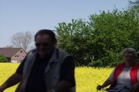 Auf dem Biohof wartet auch der "Kreisverband Gartenbau Münster/Münsterland" zur Aktion "Münster bekennt Farbe" mit drei großen Blumengestecken auf. Sie werden der größten Radlergruppe, dem ältesten Teilnehmer und dem 800. Teilnehmer überreicht. "Und die Gewinner erhalten obendrein vom ADFC neue Radkarten für Münster dazu", ve rspricht Hajo Gerdemann. Ältester Radler war mit 85 Jahren Otto Rascher. Und Stefanie Grote und Jörg Nacken beißen vergnügt in eine Wurst: "Ob jung oder alt - eine tolle Gemeinschaft hier." Gut bei Kräften ging es dann wieder zurück nach Münster. Mit leichtem Muskelkater und gesunder Farbe im Gesicht und an den Armen.