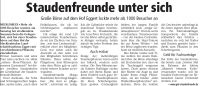 MECKLENBECK - Mehr als 1000 Besucher nutzten am Samstag bei strahlendem Sonnenschein die Gelegenheit, sich bei einer Staudenbörse auf dem Hof der Mecklenbecker Landschaftsbaufirma Eggert mit verschiedensten Pflanzen einzudecken. Ottmar Asemann und seine Frau Anna suchten vor allem "seltene Moor-Pflanzen für unseren Gartenteich" bei dieser zwölften Staudenbörse der Gesellschaft der Staudenfreunde Münster. Ursel Asemann, die Sohn und Schwiegertochter begleitete, suchte indes "nach alten Heilpflanzen, die ich im Schrebergarten anpflanzen möchte". Für einige der rund 120 münsterschen Staudenfreunde sei das Züchten von Stauden "wie eine Leidenschaft", erklärte eines der Mitglieder.