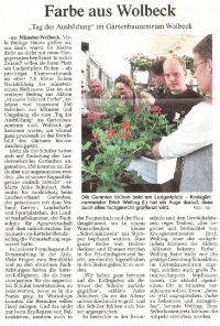 "Tag der Ausbildung" im Gartenbauzentrum Wolbeck Münster-Wolbeck. Viele fleißige Hände griffen zu, am Ende waren 68 Kästen dicht an dicht mit roten Hängegeranien bepflanzt. In naher Zukunft sollen sie ihren Platz am Ludgeriplatz finden - als prächtiger Blumenschmuck an einer 7,5 Meter hohen Nachbildung des münsterischen Rathauses. Das ist ein weiterer Beitrag zur Aktion "Münster bekennt Farbe", geleistet von insgesamt 250 Schülern aus Münster und Umgebung, die zum "Tag der Ausbildung" ins Gartenbauzentrum nach Wolbeck gekommen waren, um einmal ganz praxisnah in das Berufsbild des Gärtners hineinzuschnuppern.