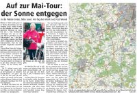 Von Thomas Krämer Münster: Nicht mehr ganz eine Woche, dann bitten wir Sie, verehrte Leser, wieder kräftig in die Pedalen zu treten. Am nächsten Dienstag ist nämlich der 1. Mai. Traditionell schwingen wir uns an diesem Datum mit Ihnen in den Fahrradsattel, zur 1.-Mai-Tour von kaufen+sparen und dem ADFC (Allgemeiner Deutscher Fahrrad-Club). Und Sie sind herzlich eingeladen mitzufahren. Wir möchten Ihnen die Gelegenheit bieten, einen schönen Frühjahrstag an der frischen Luft und in der schönen Landschaft des Münsterlandes zu verbringen. Wenn das Wetter mitspielt, sollte dem nichts im Wege stehen. Und wenn nicht? Sie wissen ja: Es gibt kein schlechtes Wetter, sondern nur die falsche Kleidung ...