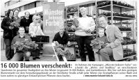 Im Rahmen der Kampagne „Münster bekennt Farbe“ verschenkt die „Wohn- und Stadtbau“ an verschiedenen Standorten im gesamten Stadtgebiet an ihre Mieter insgesamt 16 000 Balkon- und Gartenblumen.Wie hier auf dem gestrigen Blumenmarkt vor dem Verwaltungsgebäude an der Steinfurter Straße erhält jeder Mieter vier Gratispflanzen seiner Wahl und kann zudem zu günstigen Einkaufspreisen Pflanzen dazu kaufen. www.muenster-bekannt-farbe.de MZ-Foto: Witte