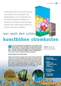 Münster bekennt Farbe und Farbe soll in die Stadt: auf die Balkone und auf die Schulhöfe, in die Kleingärtenanlagen und vor das Vereinsheim. Die Sommeraktion des Amtes für Grünflächen und Umweltschutz wird natürlich von den Stadtwerken unterstützt. Unser Angebot: Malen Sie Motive aus der Natur auf die grauen Stromkästen!