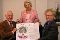 Mit einem farbenfrohen Plakat zeigt er, welche Tiere alle von einem Baum profitieren. Fast 700 Plakate konnten Dank der Unterstützung der Schutzgemeinschaft deutscher Wald gedruckt werden. Der stellvertretende Vorsitzende des Kreisverbandes Coesfeld, Hubert Große Kleimann (l.), überreichte jetzt gemeinsam mit Tauchnitz ein Muster-Plakat an Bürgermeisterin Karin Reismann. Die restlichen gehen an das Amt für Kinder, Jugendliche und Familien, das in diesen Tagen die Plakate an alle Kita-Gruppen in Münster verschickt. |
