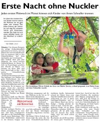 Hintergrund für diesen großen technischen Aufwand: Mehrere Kinder beklagten im vergangenen Jahr enttäuscht, dass ihre tief am Baum befestigten Schnuller abgerissen worden waren. Die kleine Olivia Schulz war dieses Jahr die erste, die die neue Schnullerbaum-Saison einläuten durfte. Interessiert schaut sie Dieter Lenz vom Amt für Grünflächen und Umweltschutz zu, wie er ihren Lieblings-Schnuller mit einem blauen Band am Ast befestigt - traurig scheint sie nicht zu sein. Auch bei der späteren Frage, ob sie ihren Schnuller vermisse, bleibt sie gelassen: "Er ist jetzt weg, und ich brauch’ ihn nicht mehr, weil ich doch schon groß bin!" Es scheint, als ob Olivias Mutter schon gute Vorarbeit geleistet hat. Auch bei den übrigen Kindern, die meistens ihre Mamas mitgebracht haben, hält sich die Trauer in Grenzen. Wenige Augenblicke nach der Schnullerabgabe ist das Flugzeug auf dem Spielplatz viel interessanter. Doch Goldbeck weiß aus Erfahrung: "Die erste Nacht ohne Schnuller ist die schlimmste." Kein Wunder also, dass, wenn Kinder rückfällig werden, deren Eltern oft entnervt einen neuen Schnuller kaufen. |