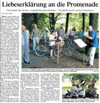 Die Menschen in Münster hätten, so der Aktionskünstler, einen engen und intimen Bezug zur Promenade. Sie würden sich hier wohlfühlen und gerne aufhalten. "Deshalb soll die Aktion ihr irgendwie helfen, nach dem Sturm wieder auf die Beine zu kommen", so Nufer. Denn bekanntlich rege ja Musik das Pflanzenwachstum an. Wie sich die Aktion auf die Pflanzen auswirkt, das muss sich noch zeigen. Bei den Passanten kam Nufers Einfall jedenfalls sehr gut an. "Diese Idee ist großartig", war Günter Bertold sichtlich begeistert. Die Natur und die Musik, diese Kombination Stimme einfach hervorragend überein. "Das Ambiente hier ist einfach toll, es geht richtig ins Gemüt." Die Bandbereite dessen, was am Samstag auf der Promenade an 31 verschiedenen Stationen geboten wurde, war groß.