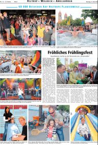 Veranstaltung des Gewerbevereins mit vielfältigem Programm Von Martina Schönwälder Münster-Hiltrup. Ein Stadtteil versteht es zu feiern – und hatte natürlich auch ein wenig Glück, dass sich das Wetter stabiler zeigte als angesagt: Rund 50 000 Besucher verzeichnete das Hiltruper Frühlingsfest, das am Samstag und Sonntag ein überaus familiengerechtes Nonstop-Programm bot, so dass Groß und Klein voll auf ihre Kosten kamen. 160 Aussteller, 35 mehr als im vergangenen Jahr, hatten ihre Stände rechts und links der Marktallee aufgebaut. Geöffnet hatten auch die Geschäfte – an beiden Tagen. |