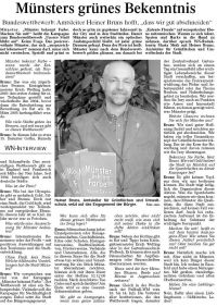 Bundeswettbewerb: Amtsleiter Heiner Bruns hofft, dass wir gut abschneiden“ Von Maria Meik Münster. „Münster bekennt Farbe. Machen Sie mit!“ heißt die Kampagne zum Bundeswettbewerb „Unsere Stadt blüht auf“. Keine Frage. Das preisverwöhnte Münster, das sich „ausgezeichnet lebenswert“ nennen darf, muss sich nicht verstecken. Sprießt und grünt es doch so grün zu gegebener Jahreszeit in der City und in den Stadtteilen. Damit Münster auch weiterhin ein optisches Aushängeschild bleibt, ist jeder grüne Daumen gefragt. Denn der Preis ist heiß: Münster kann nach dem Bundeswettbewerb golden glänzen, um danach bei „Entente Florale“ auf europäischer Ebene mitzumischen. Warum es sich lohnt, Spaten und Harke in die Hand zu nehmen, darüber sprach WN-Redakteurin Maria Meik mit Heiner Bruns, Amtsleiter für Grünflächen und Umweltschutz der Stadt.