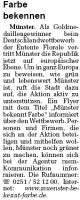 Münster. Als Goldmedaillengewinner beim Deutschlandwettbewerb der Entente Florale vertritt Münster die Republik jetzt auf europäischer Ebene. Um in ganz Europa zu beweisen, wie grün und lebenswert Münster ist, ruft die Stadt dazu auf, die Aktion aktiv zu unterstützen. Ein Flyer mit dem Titel "Münster bekennt Farbe" informiert über den Wettbewerb.