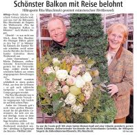 Obwohl - es war nicht nur Glück, denn Rita Muschinskis blumiger Balkon gehört zu den Top 12" in Münster: Im Rahmen der Entente Florale schrieben zwölf münstersche Betriebe des Kreisverbandes Gartenbau diesen Wettbewerb aus.