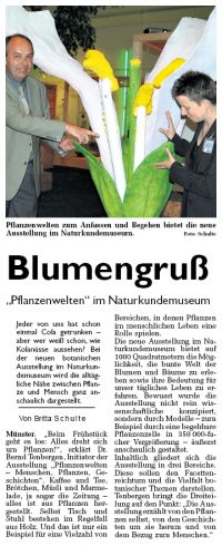 Und das ist nur ein Beispiel für eine Vielzahl von Bereichen, in denen Pflanzen im menschlichen Leben eine Rolle spielen. Die neue Ausstellung im Naturkundemuseum bietet auf 1000 Quadratmetern die Möglichkeit, die bunte Welt der Blumen und Bäume zu erleben sowie ihre Bedeutung für unser tägliches Leben zu erfahren. Bewusst wurde die Ausstellung nicht rein wissenschaftliche konzipiert, sondern durch Modelle - zum Beispiel durch eine begehbare Pflanzenzelle in 350 000-facher Vergrößerung - äußerst anschaulich gestaltet. Inhaltlich gliedert sich die Ausstellung in drei Bereiche. Diese sollen den Facettenreichtum und die Vielfalt botanischer Themen darstellen. Tenbergen bringt die Dreiteilung auf den Punkt: "Die Ausstellung erzählt von den Pflanzen selbst, von den Geschichten um sie herum und von dem Bezug zum Menschen." |