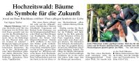 Gemeinsam mit Hubert Große Kleimann von der Schutzgemeinschaft Deutscher Wald und Horst Henner von Hopffgarten, dem Präsidenten des Rotary Club Münster-Rüschhaus Distrikt 1870, eröffnete er das rund drei Hektar große Gelände. Mit ihm stießen die ersten sechs frisch vermählten Paare vor Ort auf ihre "grünen Wegbegleiter" an. "Wir freuen uns, wenn Ihnen viele Hochzeitspaare folgen und als Zeichen ihrer Verbundenheit auch mit der Stadt, in der sie leben, einen Hochzeitsbaum pflanzen", erklärte Hartwig Schultheiß. Künftig werden die Hochzeitsbäume zu den Pflanzzeiten im Frühjahr und Spätherbst in die Erde gebracht.