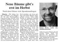 Münster. "Wir haben laufend Anfragen von Bürgern, die für eine Wiederaufforstung nach Orkan "Kyrill" Geld spenden möchten", freut sich Heiner Bruns, Leiter des Amtes für Grünflächen und Umweltschutz. Die Stadt heiße alle Spendenbeiträge willkommen. Gepflanzt werde allerdings erst im Herbst, heißt es in einer Pressemitteilung. "Im Moment machen Neupflanzungen keinen Sinn", sagt Bruns. "Zunächst müssen alle Schäden erfasst und die Folgen für die Natur und das Stadtbild eingeordnet werden. Prominente Standorte wie die Promenade gehen vor.