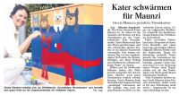 Münster-Angelmodde. Vier Kater himmeln Katze Maunzi an. Zu sehen ist das Szenario seit kurzem auf dem Stromkasten an der Vogelrohrsheide, Ecke Homannstraße. Gisela Manierah at hier den Pinsel geschwungen und den schmucklos grauen Kasten in ein kleines Kunstwerk verwandelt. Den letzten trockenen Tag vor dem angekündigten Tief nutzte die Katzenfreundin, um ihren Beitrag zum Wettbewerb „Münster bekennt Farbe“ zu leisten.